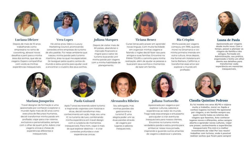 Sou apaixonada por descobrir novos destinos e transformar viagens em experiências inesquecíveis. Combinando meu conhecimento no varejo e minha experiência no turismo de luxo, criei a marca PAOLAVIAJA, que se tornou um ponto de encontro para os amantes de turismo. Já explorei os seis continentes, sempre com roteiros personalizados e exclusivos. Na PAMA TOURS, coloco em prática meu expertise em criar vivências únicas, ajudando os clientes a colecionarem boas memórias. Para mim, mais do que oferecer um roteiro, cada viagem é uma consultoria completa, desenhada para trazer o melhor de cada destino.
